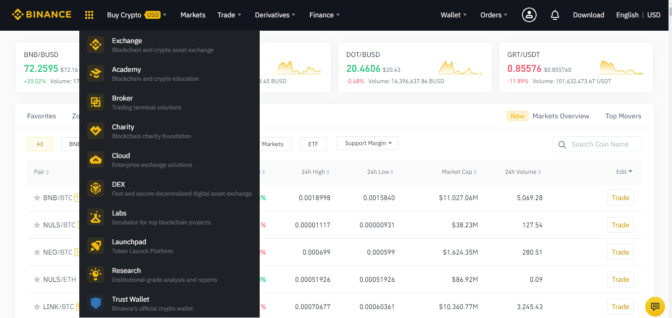 They support nearly all of the most commonly traded cryptocurrencies. They also have derivative products called Binance Futures which are priced in USDT, BTC, ETH, BNB, LINK, DOT, XRP and more.