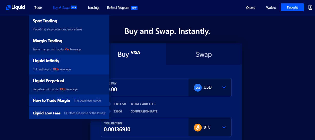 Liquid has a wide selection of crypto currencies and features. Liquid has a native token named QASH which gives some benefits to traders on the exchange.