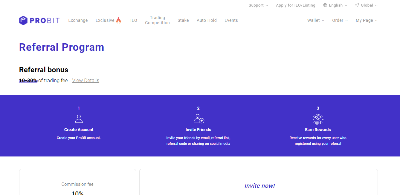 A Probit referral code is a code which gives you the chance to register and start to earn up to 30% of your referees trading fees, if you create an account with this link. We also get a small commission. It's a win-win.