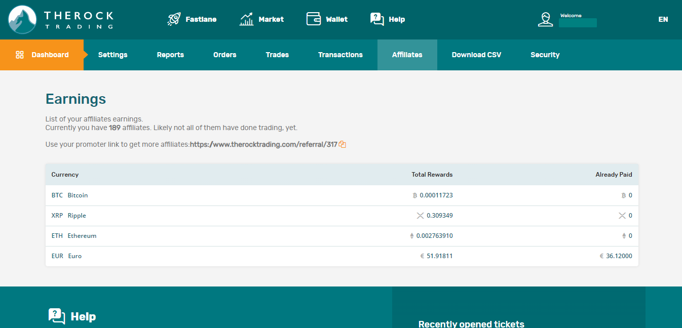 A The Rock Trading referral code is a code which gives you the opportunity to earn up to 20% of trading fees from your referrals, if you create an account with this link. We also get a small commission. It's a win-win.